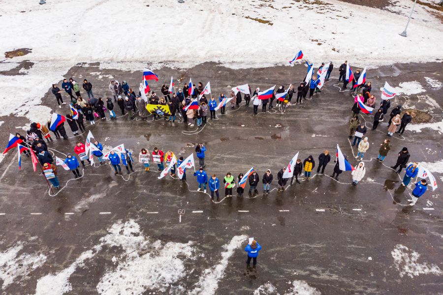 Студенты вузов и колледжей, активисты «Молодой гвардии Единой России» отметили девятую годовщину воссоединения Крыма с Россией зрелищным митингом-флешмобом: они выстроились в форме карты РФ, включающей Луганскую и Донецкую народные республики, Херсонскую и Запорожскую области и исполнили гимн РФ. Таким образом активисты ещё раз напомнили, что Крым, Донбасс и Россия — одна страна и один народ.