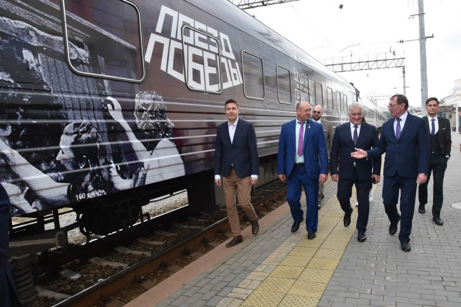Масштабный историко-просветительский проект, реализованный в рамках празднования 75-летия Победы в Великой Отечественной войне, воссоздаёт историческую реальность благодаря современным технологиям. Посетители выставки, следуя через 10 тематических вагонов «Поезда Победы», видят первые дни войны, сражения на фронте, тотальные разрушения, спасение в санитарном поезде раненых, ужасы концлагерей. Завершается экспозиция вагоном с ликующими солдатами, возвращающимися в День Победы домой. Сопровождает выставку аудиогид, в котором звучит рассказ 19-летней участницы Великой Отечественной войны Лидии. Она в таком юном возрасте являлась машинистом поезда. Героиню озвучила заслуженная артистка РФ Екатерина Гусева.
