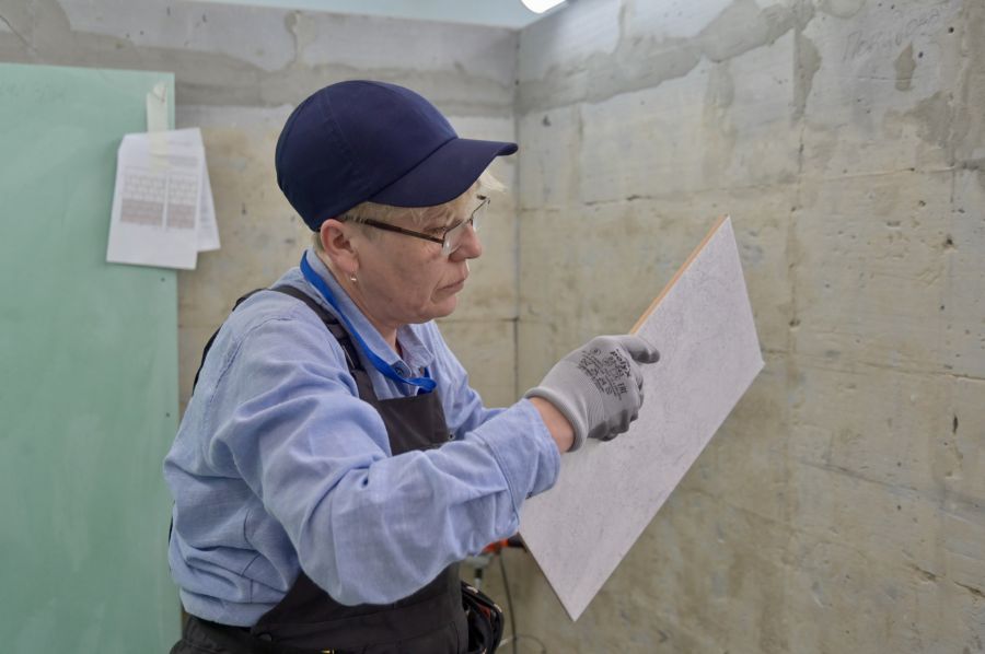 «Задания не очень трудные, хотя всё равно есть свои сложности. Нужно сделать облицовку поверхности плиткой размером 275 на 400 со смещением швов на одну треть. На облицовку и затирку даётся 3,5 часа. Здорово, что есть возможность поучаствовать в конкурсе наравне со специалистами, которые уже много лет работают в отрасли, и получить дополнительный опыт», — поделился студент второго курса колледжа Григорий Боярских.