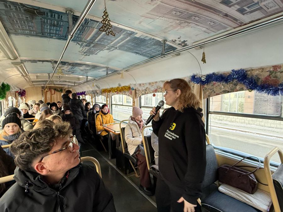 Уральское отделение Общества «Знание» организовало для студентов Свердловской области трамвай-лекторий. Ребята узнали об истории блокады и важной роли трамвая, который стал одним из символов города на Неве. Участники узнали, что в Свердловск из Ленинграда доставили 60 трамваев, которые были сильно повреждены пулями и осколками. Их починили и снова запустили на городские маршруты.