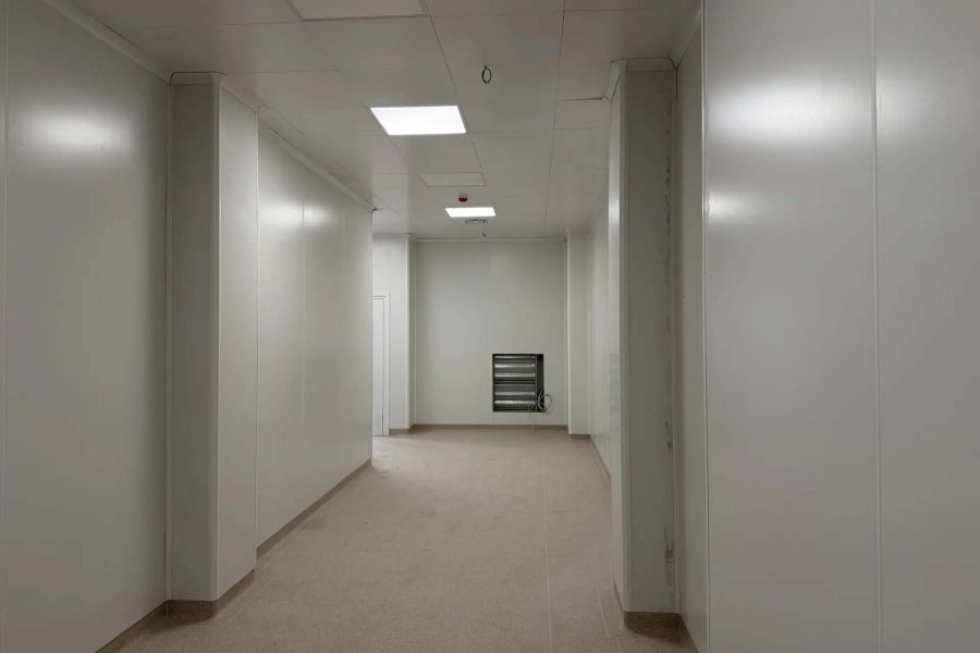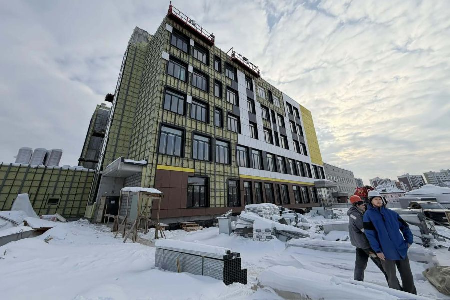 Завершается работа над окнами и витражами. Готовность фасада составляет 82%. Монтаж внутренних инженерных сетей также близок к завершению: водоснабжение и канализация готовы на 78%, отопление и вентиляция — на 86%.
