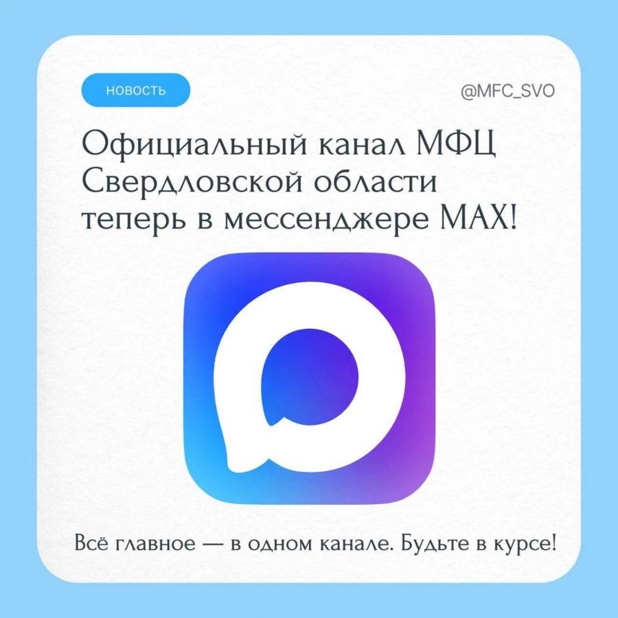 Официальный информационный канал в мессенджере MAX 9 октября запустил Многофункциональный центр предоставления государственных и муниципальных услуг (МФЦ) Свердловской области.