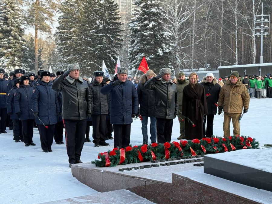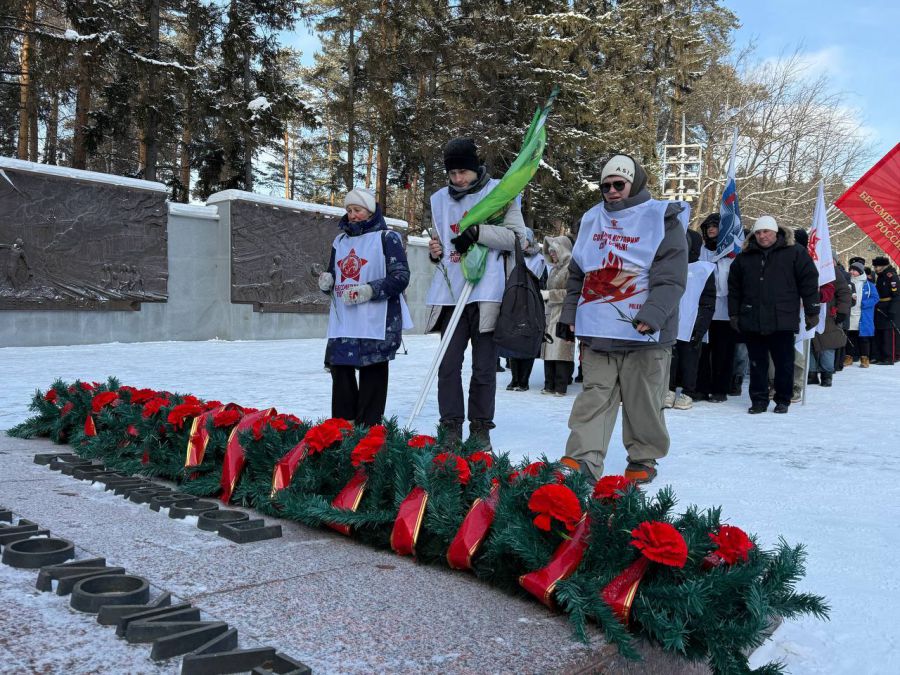 На Широкореченском военно-мемориальном комплексе около 200 представителей ветеранских организаций, волонтёрского и молодёжного движения региона почтили минутой молчания память павших во время блокады ленинградцев и возложили цветы к Вечному огню.